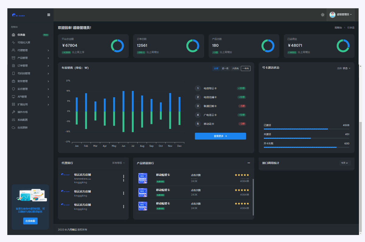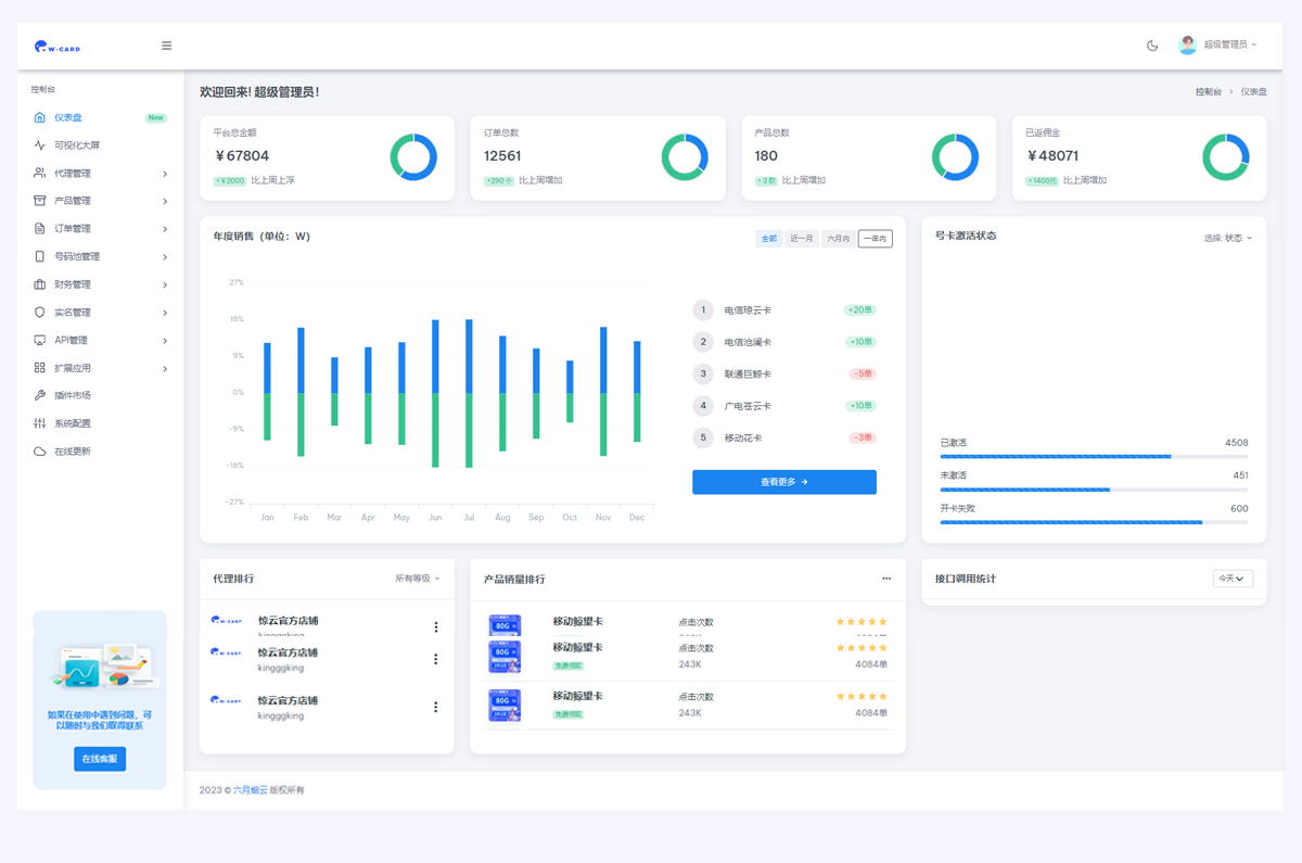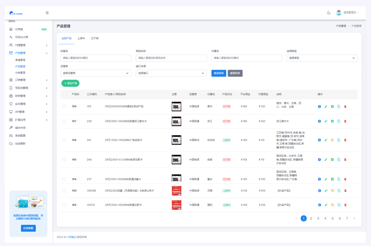 使用卡云系统,轻松管理代理商品,对接上下游,对接运营商!